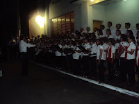 Os quatro corais do município foram posicionados em frente a Sociedade Recreativa União Clube, as autoridades ficaram à direita e o povo preencheu os espaços livres das ruas e da praça.