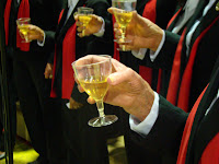 Os coralistas de Grão Pará, regidos pelo Maestro Lourenço Muller durante uma de suas peças serviu um delicioso vinho verde aos presentes, animando ainda mais a canção.