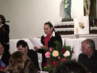 Lucinei Lopes da Luz. À mesa de honra, ladeada pelo Prefeito