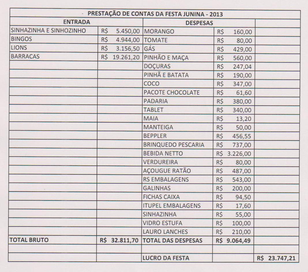 Prestação de Contas da Festa Junina
