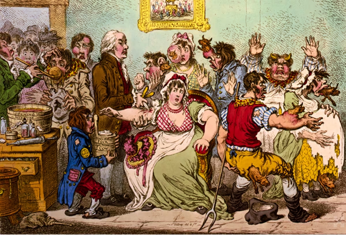 A vacina era uma grande novidade. Em 1796, na Inglaterra, o médico Edward Jenner observou que os camponeses que ordenhavam vacas infectadas e contraíam a varíola bovina —uma variação inofensiva da doença— por alguma razão passavam a sair ilesos dos surtos de varíola humana. Para verificar se não se tratava de mera coincidência, ele decidiu retirar o pus das bolhas localizadas nas mamas das vacas doentes e inoculá-lo em cobaias humanas. O experimento teve o resultado imaginado. Jenner, assim, comprovou o poder protetor do pus infectado com a varíola animal.