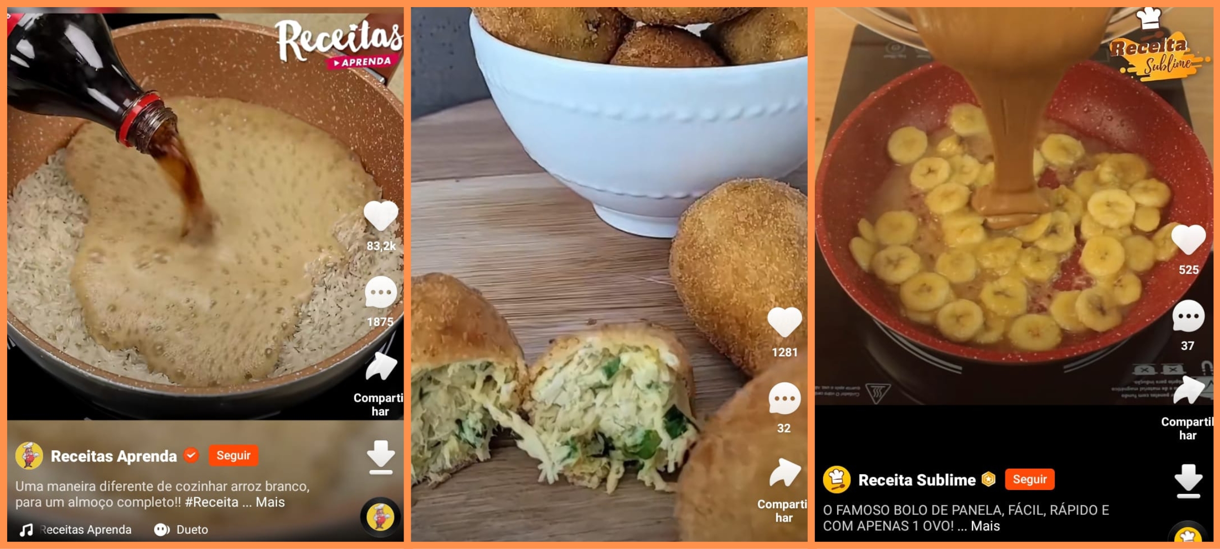 4 – Bolo de frigideira: inovando o modo de preparo do clássico bolo de banana, esta versão de frigideira já conta com 3 mil visualizações e é ótimo para os dias em que as pessoas não querem gastar muito tempo assando a receita no forno e até economizar na louça suja.