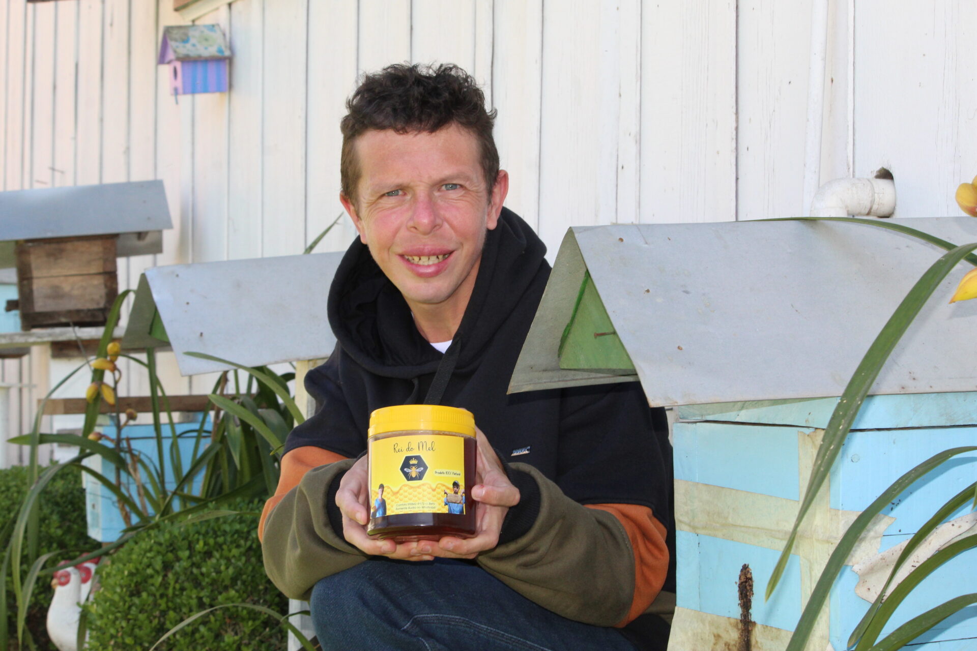 A primeira colmeia, acondicionada dentro de uma casinha de madeira, ele comprou de um vizinho, e naquele momento informou os pais que iria entrar no ramo da apicultura. Estava decidido. Mais de 40 caixinhas seguiram a primeira e se espalharam pelo entorno da casa da família, na casa de tios e uma até no Paraguai, na propriedade de uma conhecida da família.