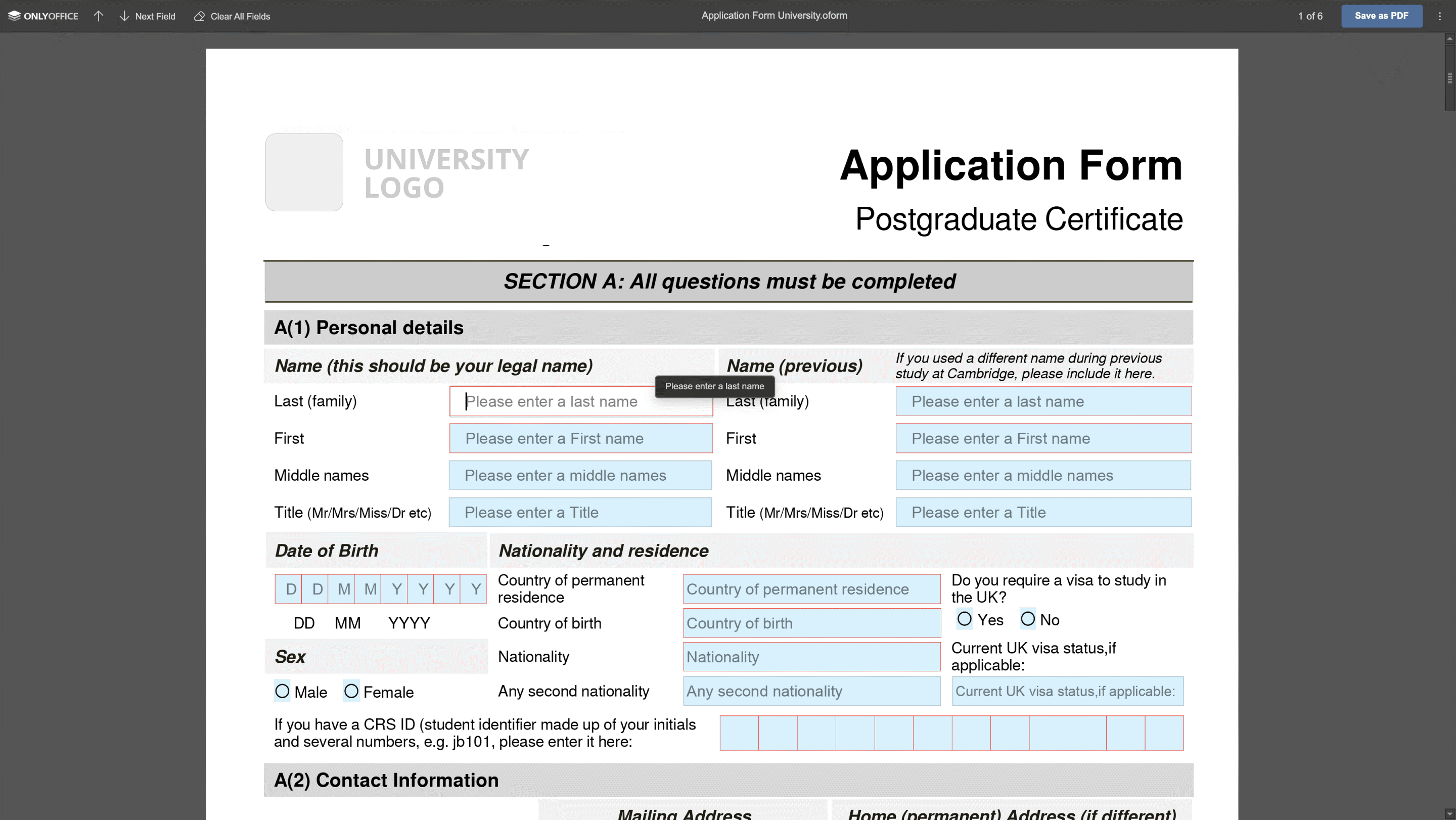 Como criar um formulário PDF preenchível com o ONLYOFFICE Docs