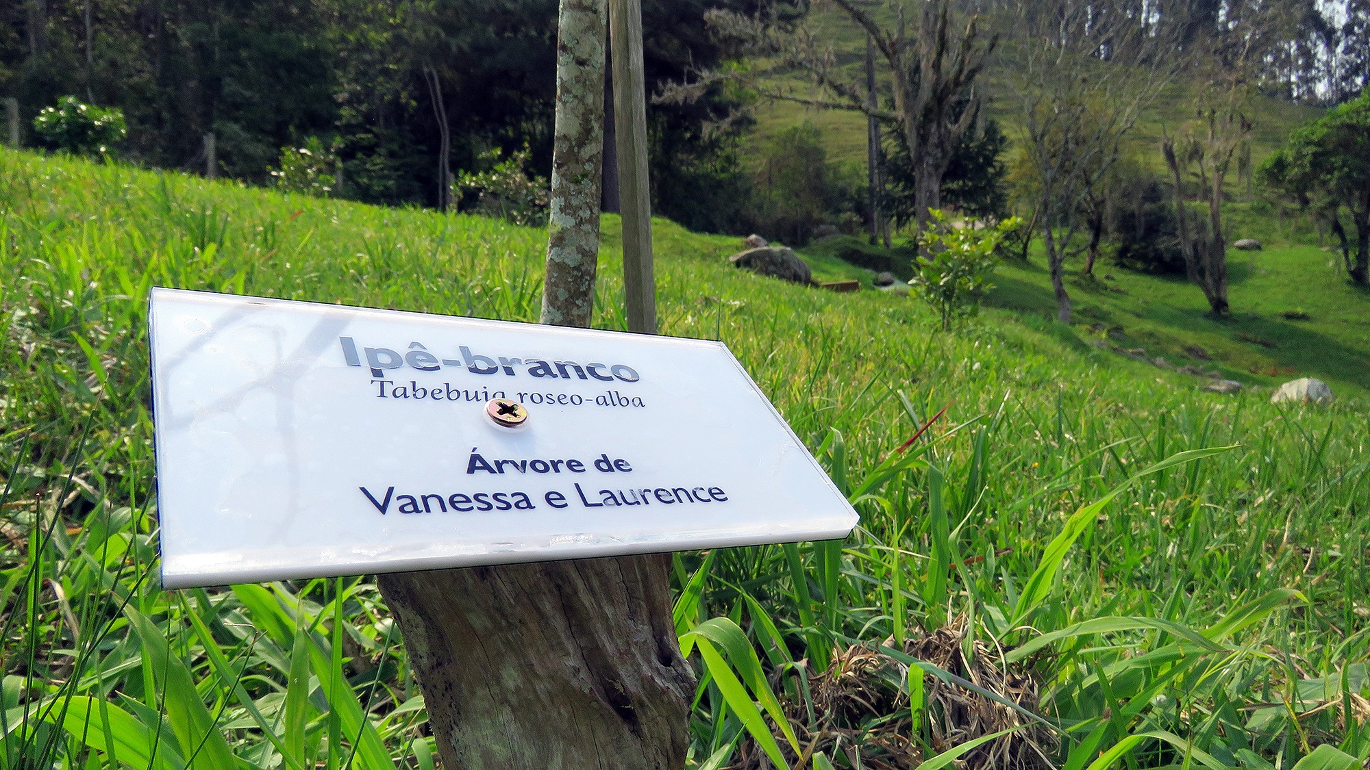 O ipê-branco plantado em 2019 e que deverá florir pela primeira vez em 2024, por exemplo, tem plaquinha com os nomes de Vanessa e Laurence Rossetto. O casal esteve em Pedras Rollantes em 2018 e, ao saberem do “Uma árvore para Chamar de Sua”, voltaram no ano seguinte para plantar sua árvore e sempre voltam para curtir a pousada e conferir o desenvolvimento do ipê.