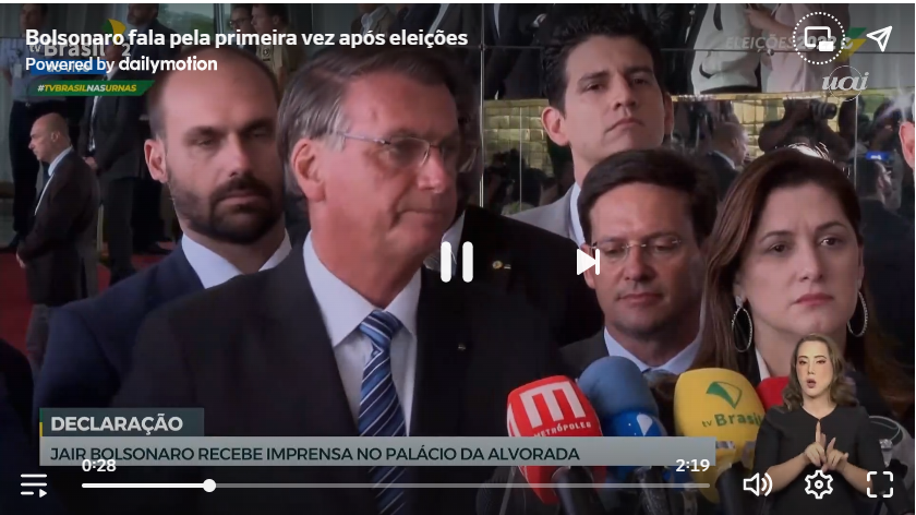 Quero começar agradecendo os 58 milhões de brasileiros que votaram em mim no último dia 30 de outubro. Os atuais movimentos populares são fruto de indignação e sentimento de injustiça de como se deu o processo eleitoral. As manifestações pacíficas sempre serão bem-vindas, mas os nossos métodos não podem ser os da esquerda, que sempre prejudicaram a população, como invasão de propriedades, destruição de patrimônio e cerceamento do direito de ir e vir.