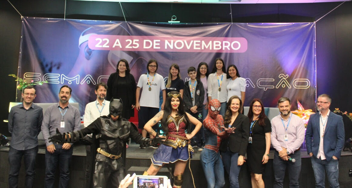 Nesta sexta-feira (25/11), vencedores catarinenses da 2ª Olimpíada Nacional de Eficiência Energética (ONEE 2022) estiveram na Celesc para participar da cerimônia de premiação da competição, realizada durante a programação da Semana de Inovação da Companhia.