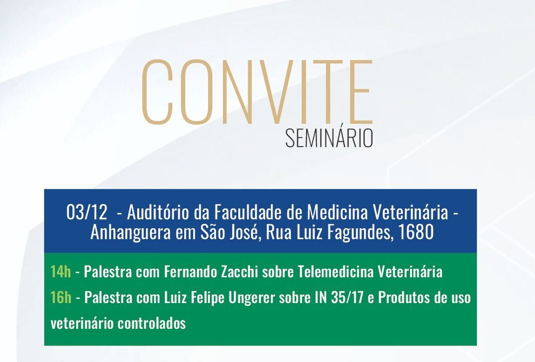 - 16h – Instrução Normativa 35/17 e produtos de uso veterinário controlados, com Luiz Felipe Ungerer