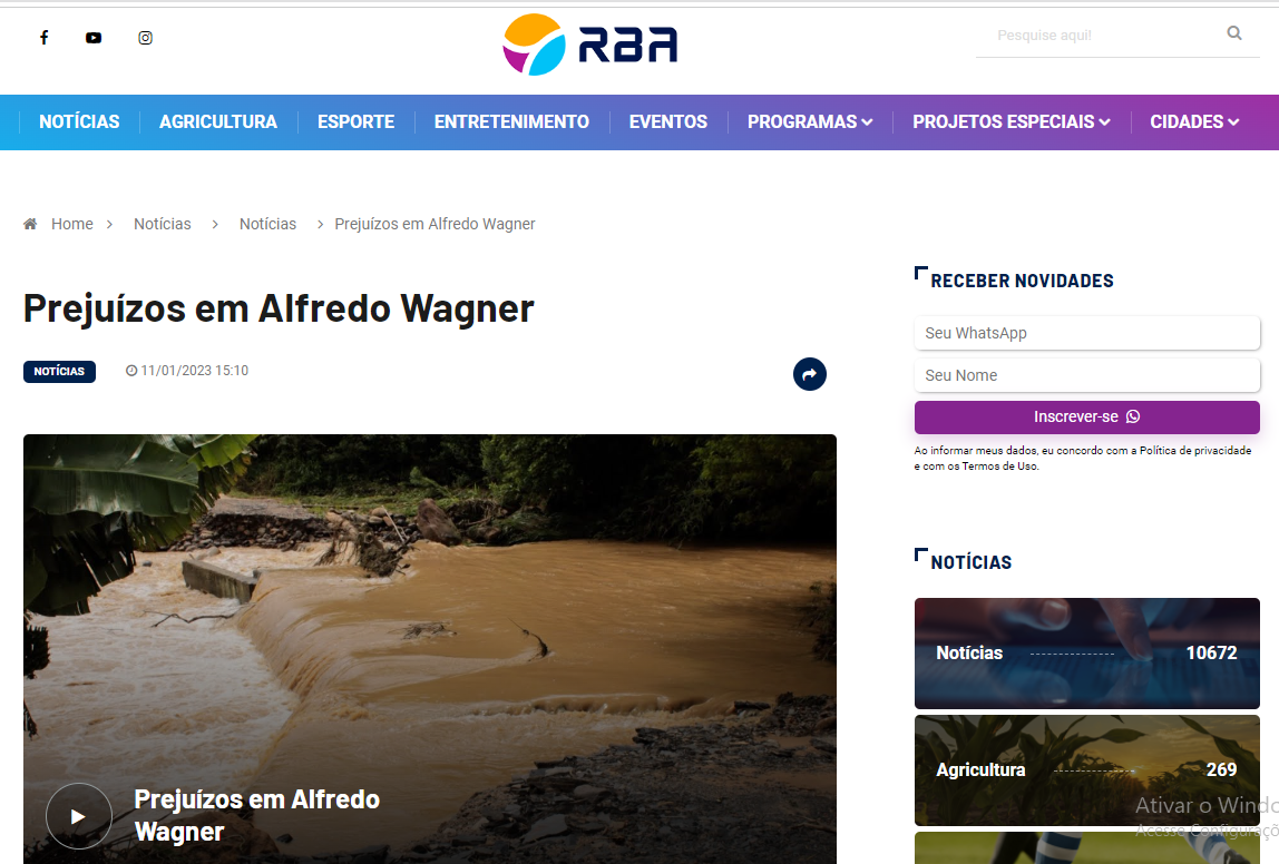 Prejuízos em Alfredo Wagner – RBA TV – Rede Bela Aliança de Televisão