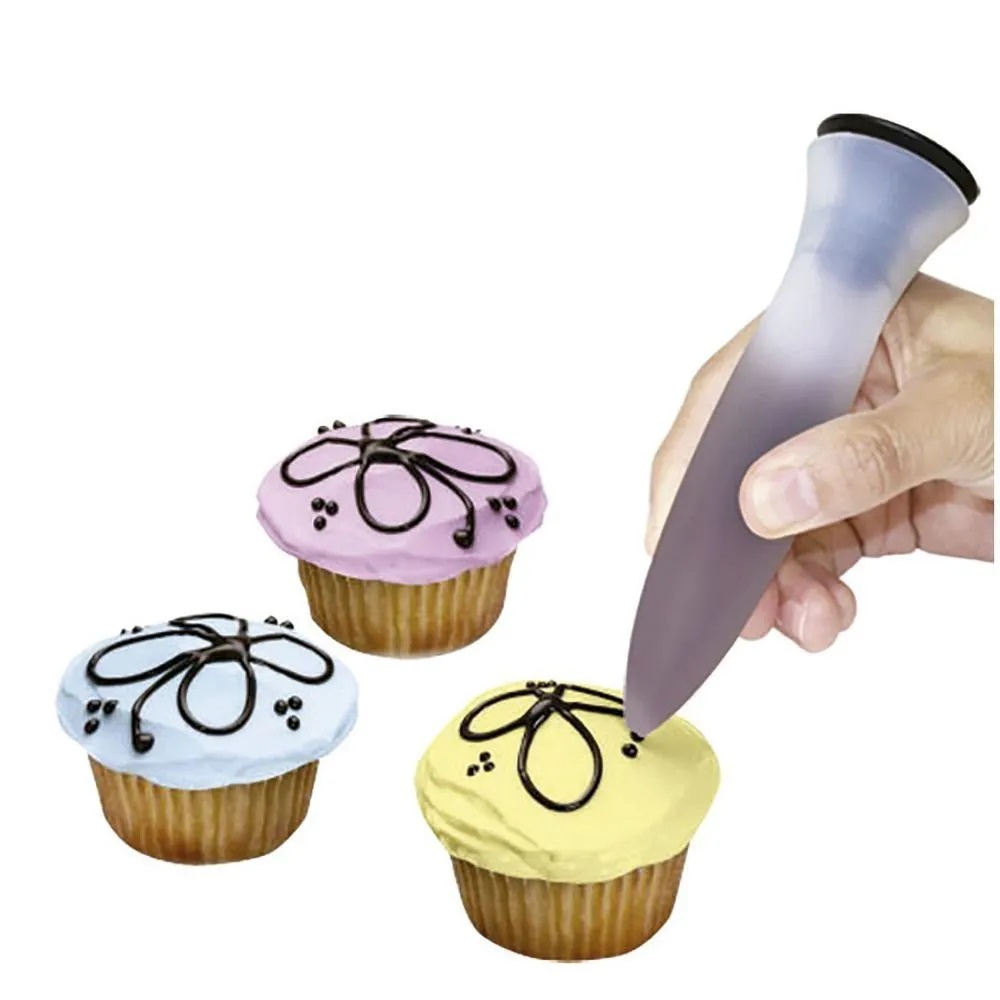 Muito prática e fácil de usar, essa caneta ajuda a decorar cupcakes e outros bolinhos. Decorar é uma das atividades mais divertidas na cozinha, já que os pequenos podem exercitar a criatividade aos montes.