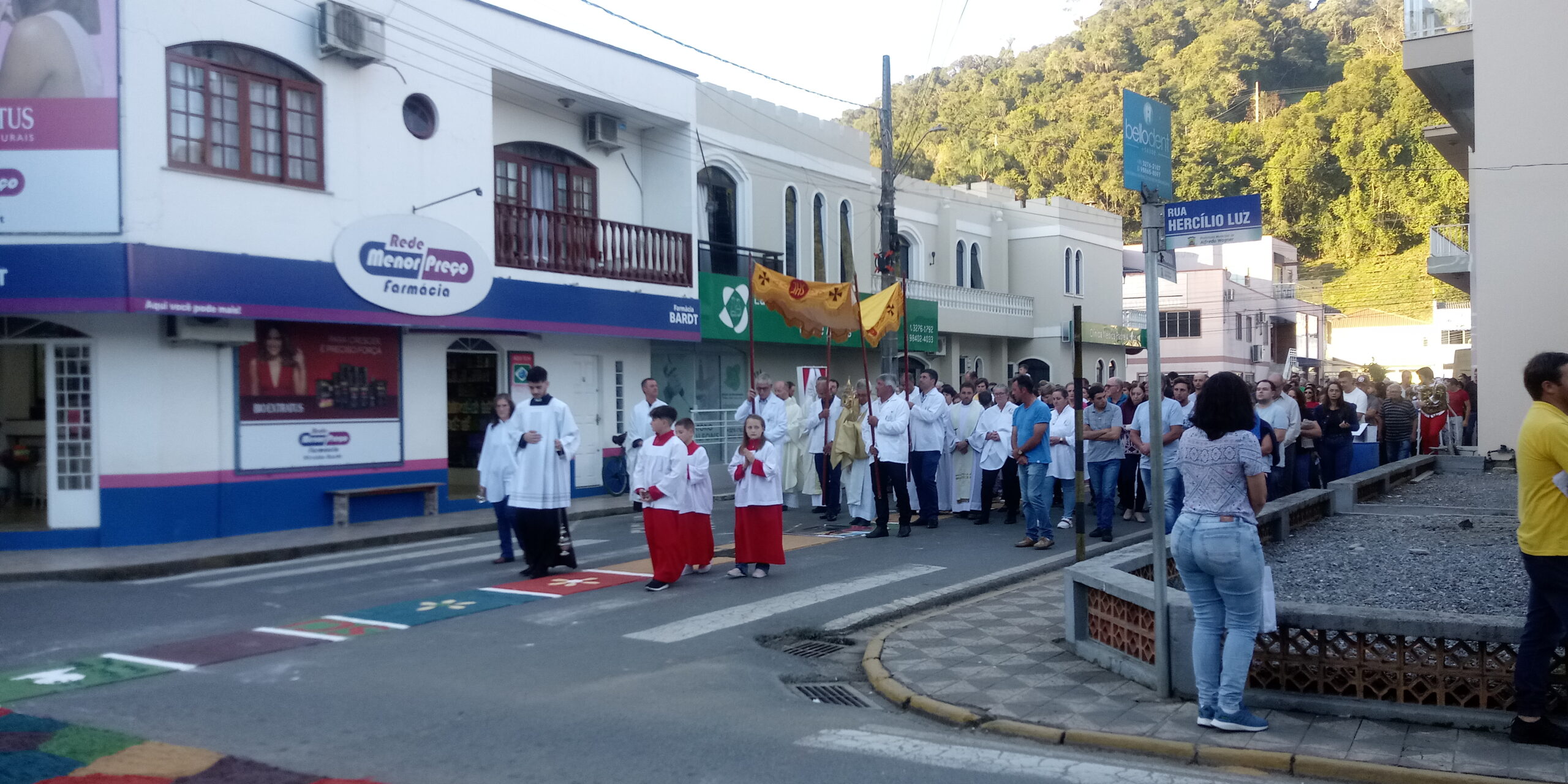 Acompanhado dos Freis Capuchinhos que pregam as Missões em Alfredo Wagner, do Pároco, Pe. Leandro Kammer, lideranças e de todo o povo de Deus, Dom Onésimo conduziu a celebração eucarística e a procissão, abençoando em diversas ocasiões aos fiéis que acompanhavam o ato piedoso.