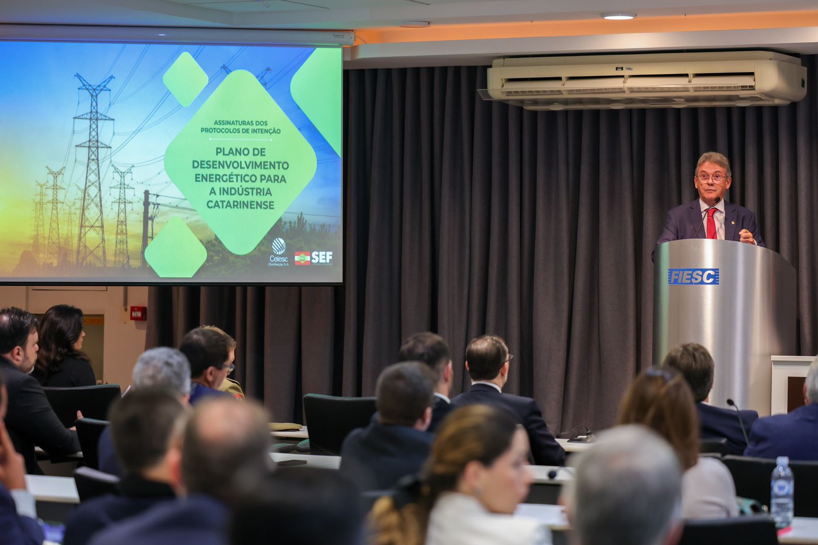 Inédito, o “Plano de Desenvolvimento Energético para a Indústria Catarinense” foi lançado oficialmente na Fiesc – Federação das Indústrias do Estado de Santa Catarina e contou com a participação do governador Jorginho Mello e da vice-governadora Marilisa Boehm. A programação reuniu também o presidente da Celesc, Tarcísio Estefano Rosa, e os secretários Cleverson Siewert (Fazenda) e Silvio Dreveck (Indústria e Comércio). Presidente da Fiesc, Mario Cezar de Aguiar foi o anfitrião da solenidade. Os dirigentes das 11 empresas atendidas pelo plano também marcaram presença e assinaram os respectivos protocolos de intenção.