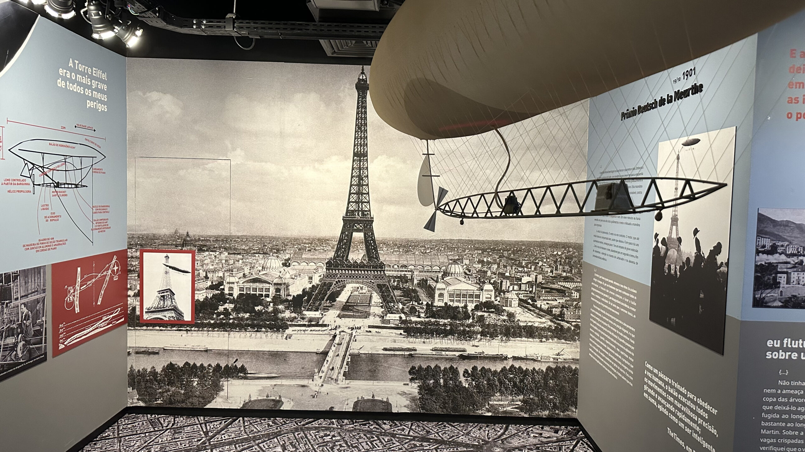 A exposição inicia na galeria do 24º andar, onde apresenta a narrativa das diversas tentativas e os muitos inventos que se propuseram a fazer o homem voar. Com o objetivo de fazer sentir Paris, o público caminha sobre uma imagem aérea da cidade aplicada no piso, com a localização das atividades cotidianas do aeronauta. O Balão Brasil e os 10 modelos de dirigíveis (Nº1 a Nº10) concebidos e testados por Santos Dumont, no desenvolvimento da pesquisa sobre a dirigibilidade dos balões, são apresentados como maquetes feitas exclusivamente para esta exposição, pelo arquiteto Ricardo Martins Girotto Mendes, que intensificam a experiência do visitante.