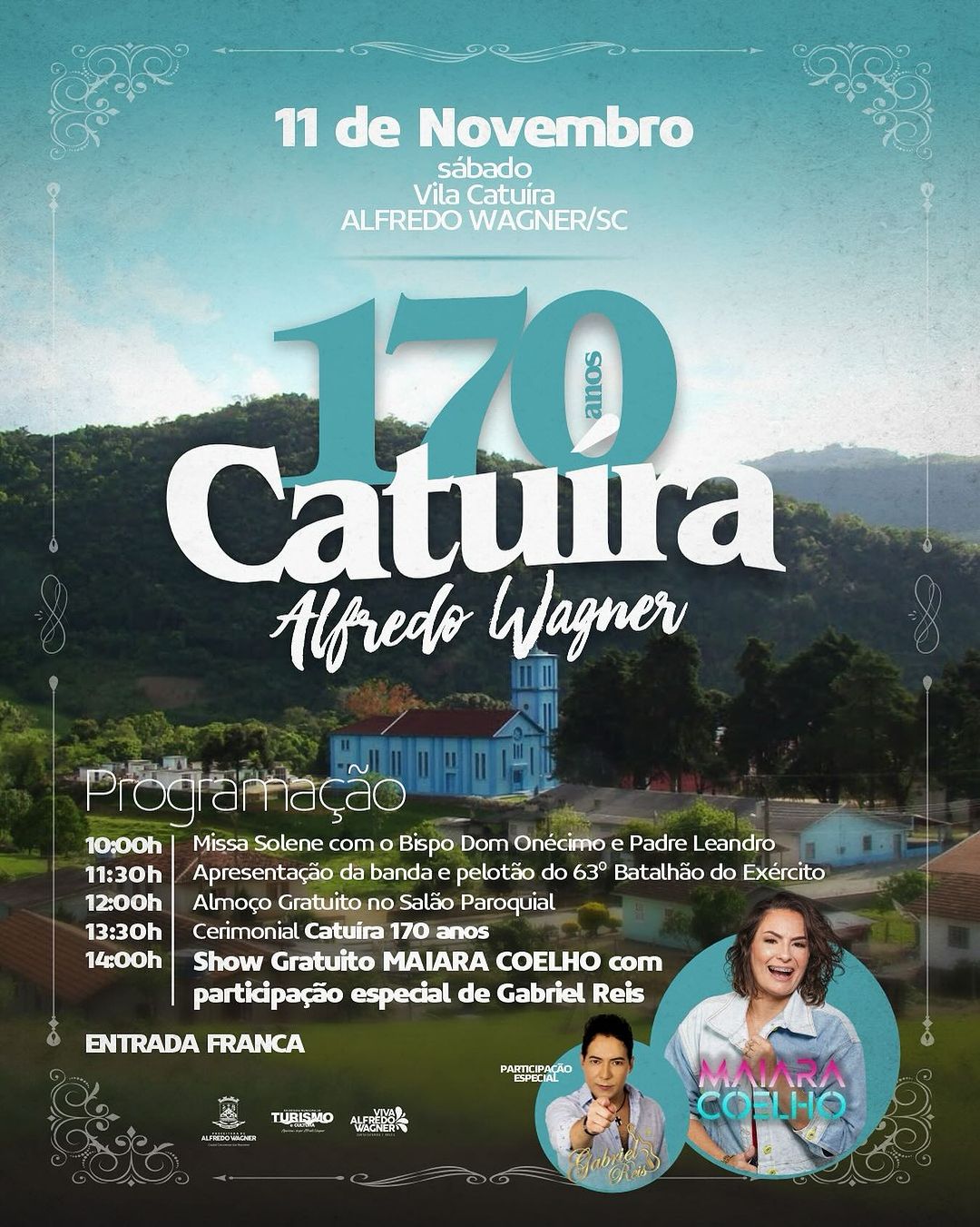 A Prefeitura Municipal de Alfredo Wagner, através da Secretaria Municipal de Turismo, juntamente com a Comunidade da Vila da Catuíra prepara uma linda festa para comemorar os 170 anos da fundação dos primórdios do município, através de decreto imperial criando a Colônia Militar Santa Teresa.