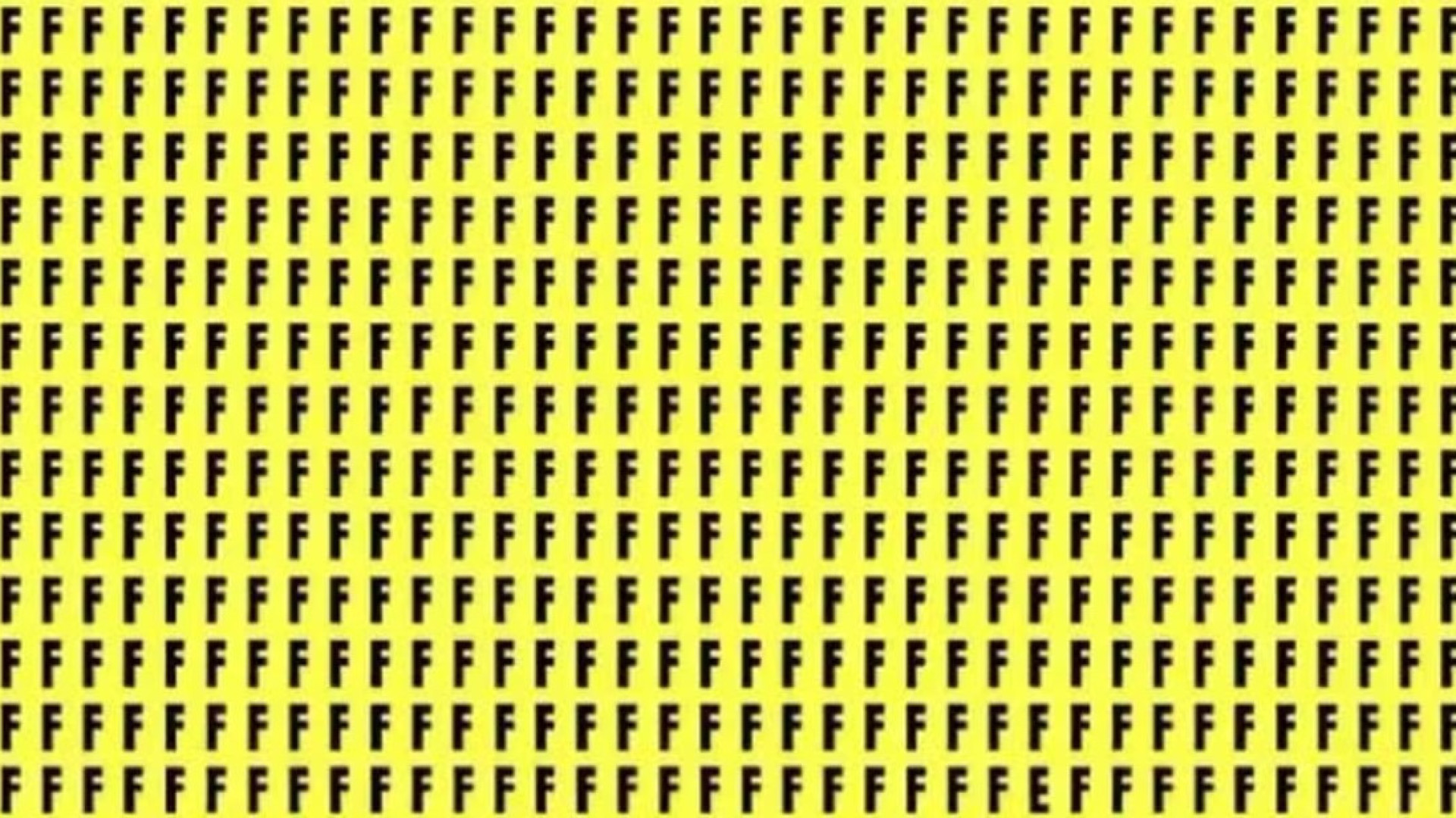 Um novo desafio viral nas redes sociais está colocando à prova a destreza mental dos internautas. A imagem, que é toda amarela e cheia de letras “F”, tem uma letra “E” intrusa. Os participantes têm apenas oito segundos para encontrar a letra diferente.