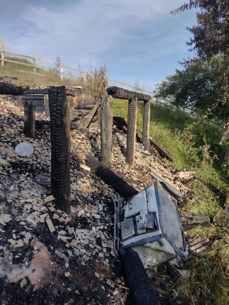 E, apesar da agilidade, assim que as equipes de socorro conseguiram enfim chegar ao local, a residência de madeira, de aproximadamente 20m², em meio rural, já estava completamente destruída, com o incêndio já em sua fase de diminuição.
