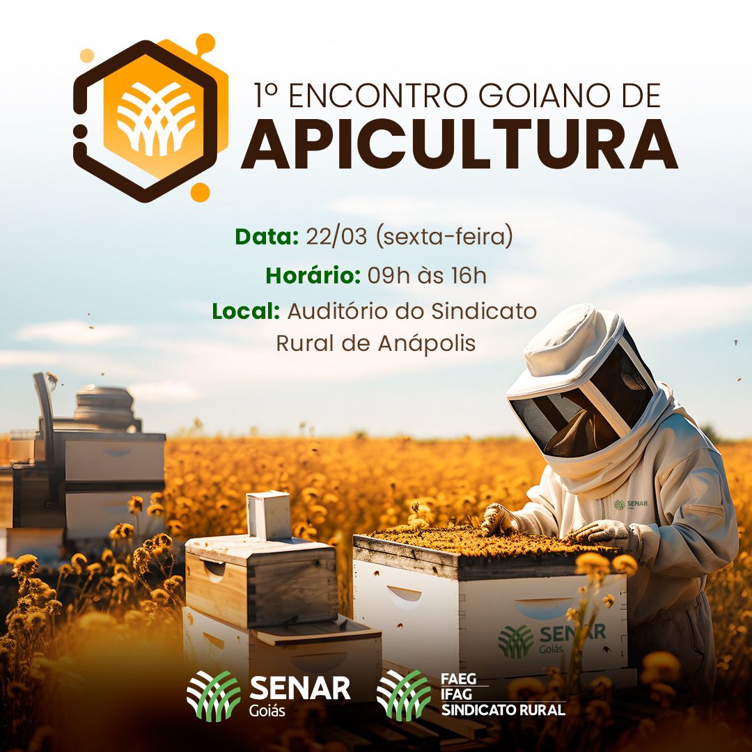 O I Encontro Goiano de Apicultura do Senar Goiás, acontece no Sindicato Rural de Anápolis, na próxima sexta-feira, dia 22/03. As palestras trarão informações sobre mercado e ainda terá o lançamento da realidade virtual nos cursos da instituição. Por meio da tecnologia, os alunos poderão entrar virtualmente em um apiário, familiarizando o contato para o momento de um manejo presencial. As inscrições são gratuitas no site: https://sistemafaeg.com.br/eventos. Os que não conseguirem vaga podem acompanhar pelo: https://www.youtube.com/sistemafaeg.