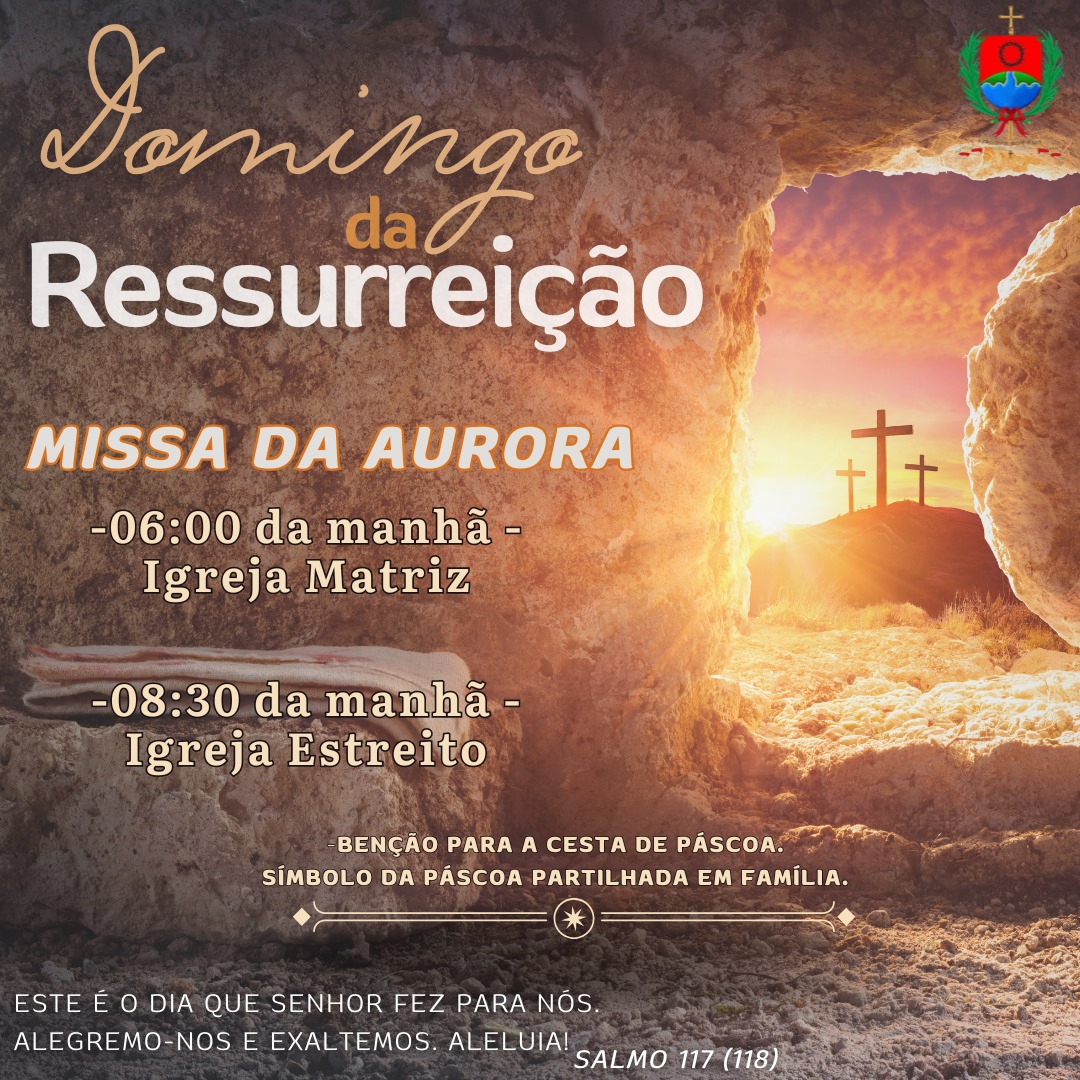 No domingo de Páscoa, o Pe. Leandro celebrará duas Missas: às 6h00 na Matriz e às 8h30 na Capela do Estreito.