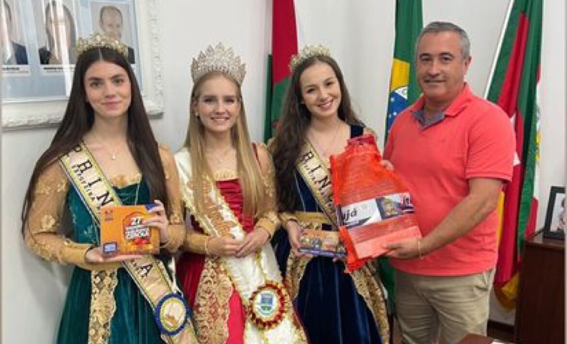 Acompanhadas da assessora da Secretaria de Turismo de Ituporanga, a Realeza da festa presenteou o Prefeito Gilmar Sani, o Secretário da Agricultura, Paulo Cesar Rossi e o Secretário da Administração, Fábio Dorigon, com uma lembrança que inclui itens gastronômicos e culturais.