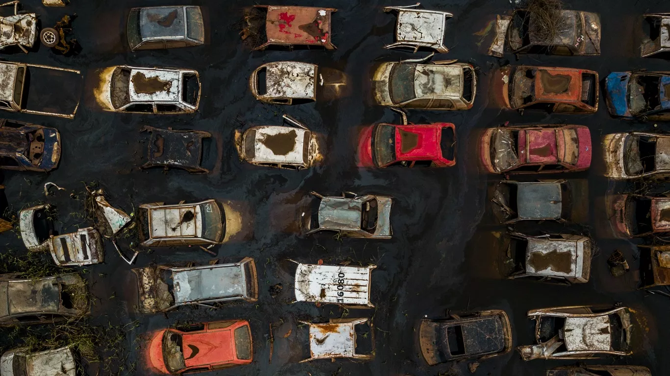 A enchente sem precedentes em Porto Alegre acabou por criar “cemitérios de veículos” na zona Norte da capital gaúcha. Centenas de automóveis pertencentes às empresas de locação e junto ao posto da Polícia Rodoviária Federal no Aeroporto Salgado Filho estão submersos devido à enchente. As águas já recuaram um pouco na região, mas a área do aeroporto e suas imediações seguem inundada.