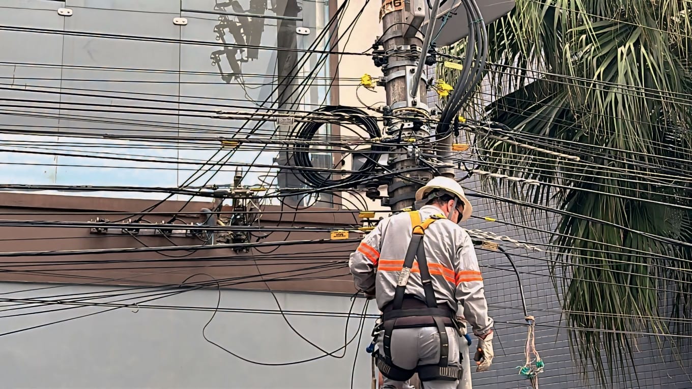 O excesso de fiação nos postes geralmente ocorre devido ao uso irregular da infraestrutura por empresas sem contrato com a Celesc ou por instalações não autorizadas. Além de aumentar a poluição visual, essas práticas afetam a tarifa de energia, já que 60% da receita gerada pelo aluguel dos postes é revertida para a redução das tarifas dos consumidores.