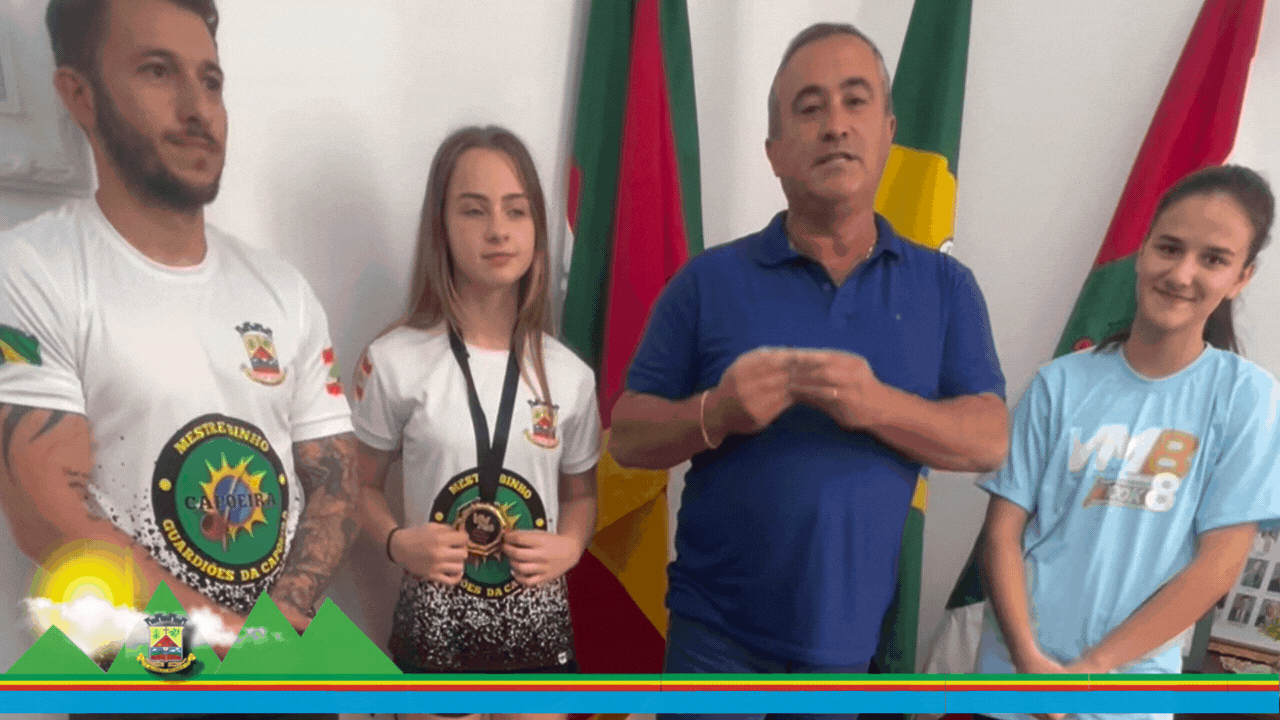 Na tarde de hoje, o Prefeito Gilmar Sani recebeu em seu gabinete o professor Samuka, responsável pela Escolinha de Capoeira de Alfredo Wagner, acompanhado de Borrachinha, atleta que conquistou o título de campeã mundial no campeonato internacional de capoeira VMB, realizado em Brasília. Juntamente com eles, esteve presente a capoeirista Amaby, que também se destacou ao chegar às oitavas de final da competição.