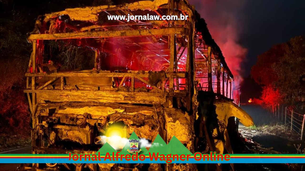 Um incêndio destruiu completamente um ônibus na madrugada deste sábado, dia 19, em Alfredo Wagner, na Grande Florianópolis. A ocorrência no km 421 da SC-350 foi registrada por volta das 4 horas e não deixou feridos.