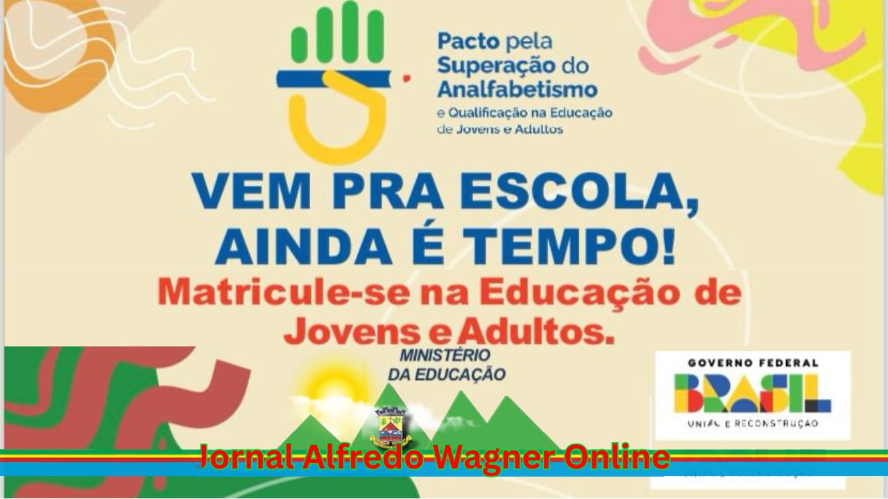 O Governo Federal, em parceria com o município de Alfredo Wagner, está trazendo para nossa cidade a campanha de alfabetização da Educação de Jovens e Adultos (EJA), com matrículas abertas para novas turmas. As aulas acontecerão no prédio da Câmara de Vereadores, no 2º andar, em local acessível e acolhedor.