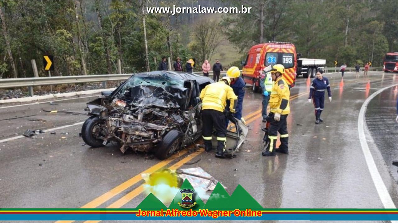 Um grave acidente foi registrado na tarde desta quinta-feira (24) na rodovia SC-350, entre Ituporanga e Alfredo Wagner, no trecho da Serra Grande, próximo à comunidade de Rio Bonito. A colisão frontal envolveu um veículo de passeio e uma carreta, resultando na morte de uma mulher de 27 anos, condutora do automóvel.