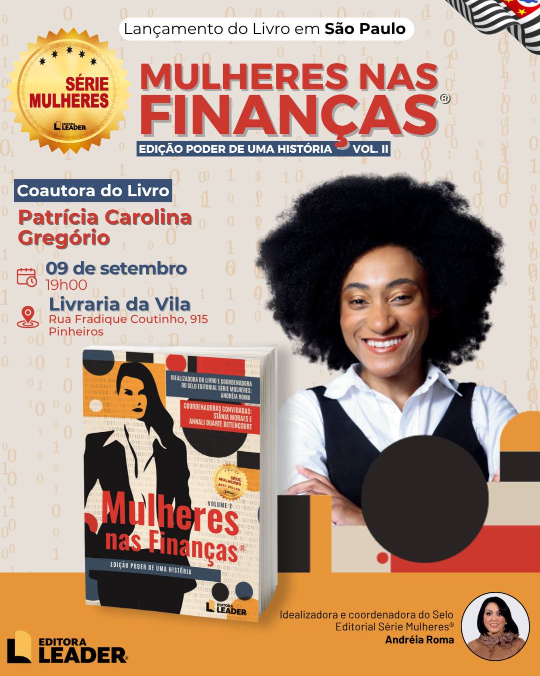 A trajetória de Patrícia, cofundadora da AP Finanças, ganha novo capítulo com sua participação como coautora no livro Mulheres nas Finanças: Edição Poder de uma História – Volume 2. A obra, publicada pela Editora Leader, reúne relatos de 47 profissionais que se destacam pela atuação e liderança no universo das finanças.