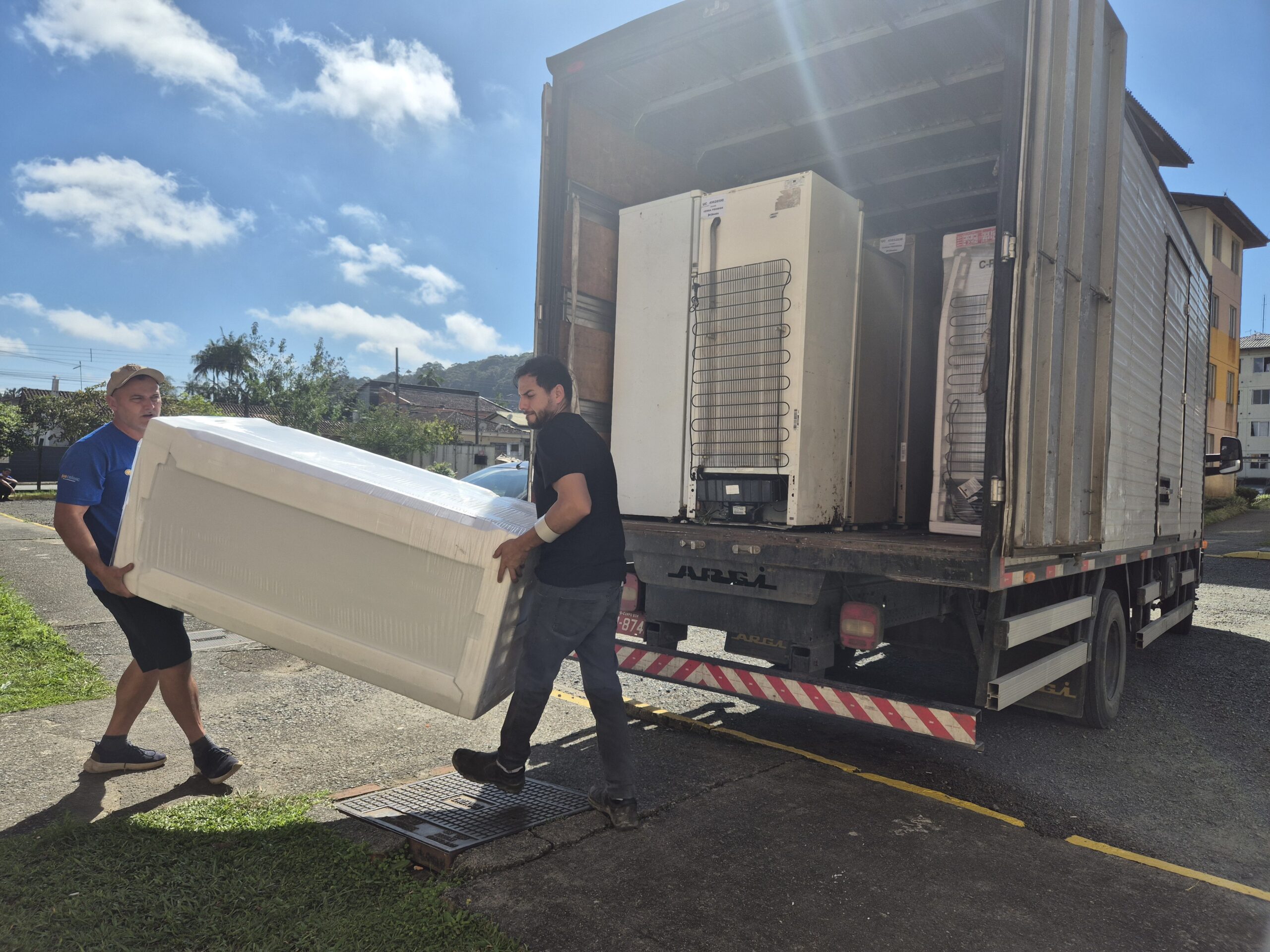 O recolhimento das geladeiras antigas e a instalação dos novos equipamentos contam com o apoio logístico das Lojas Colombo, parceira do projeto.