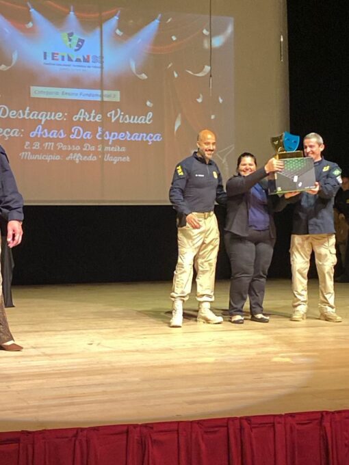 Ontem, os alunos da Escola Básica Passo da Limeira brilharam no palco do Teatro Álvaro de Carvalho, em Florianópolis, durante o Festival Estudantil de Trânsito – FETRAN.