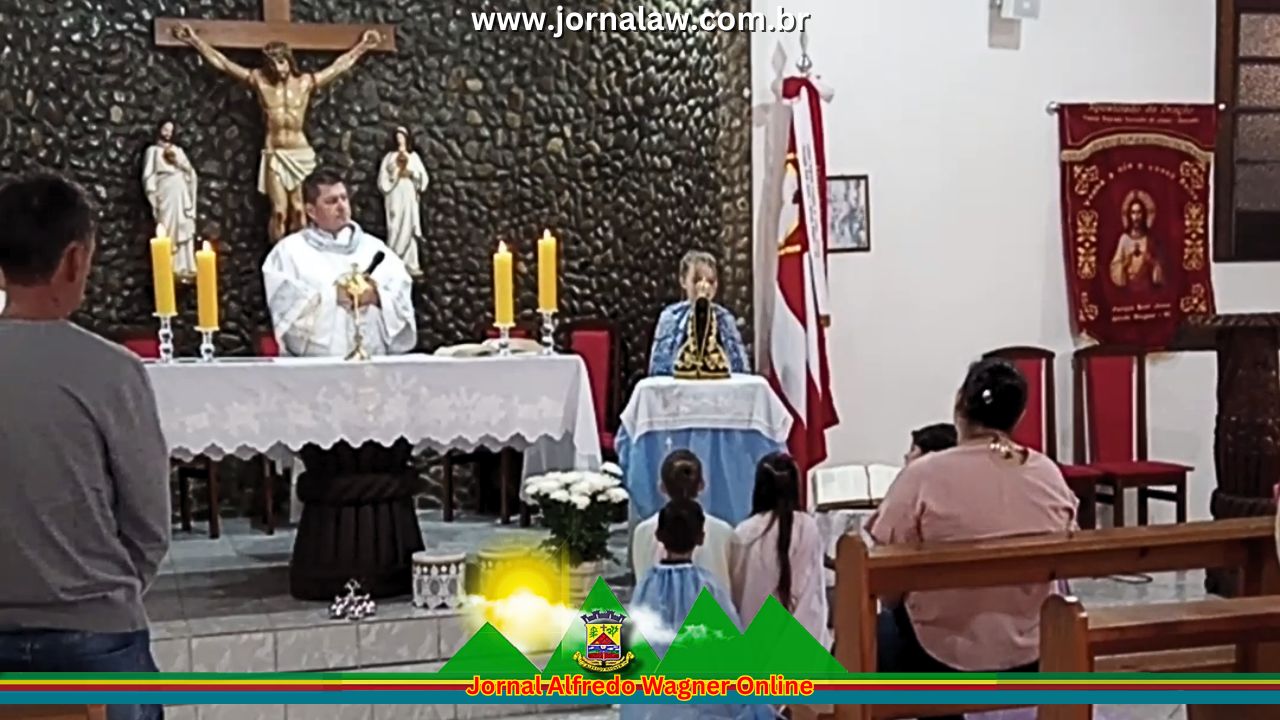 Enquanto caminhavam, as vozes se uniam em cantos marianos que enchiam a capela de um clima de oração e beleza simples, como são as coisas de Deus. A coroação foi realizada por Letícia, uma das meninas da comunidade, gesto que emocionou os presentes e representou toda a consagração do povo a Nossa Senhora Aparecida. Sem luxo nem grandes produções, a celebração tocou os corações justamente pela pureza e pela sinceridade da fé manifestada. Cada olhar, cada canto e cada símbolo colocado diante do altar revelavam que ali se vivia um momento de bênçãos, recordando que Maria continua sendo Mãe amorosa que acolhe e intercede por sua gente.