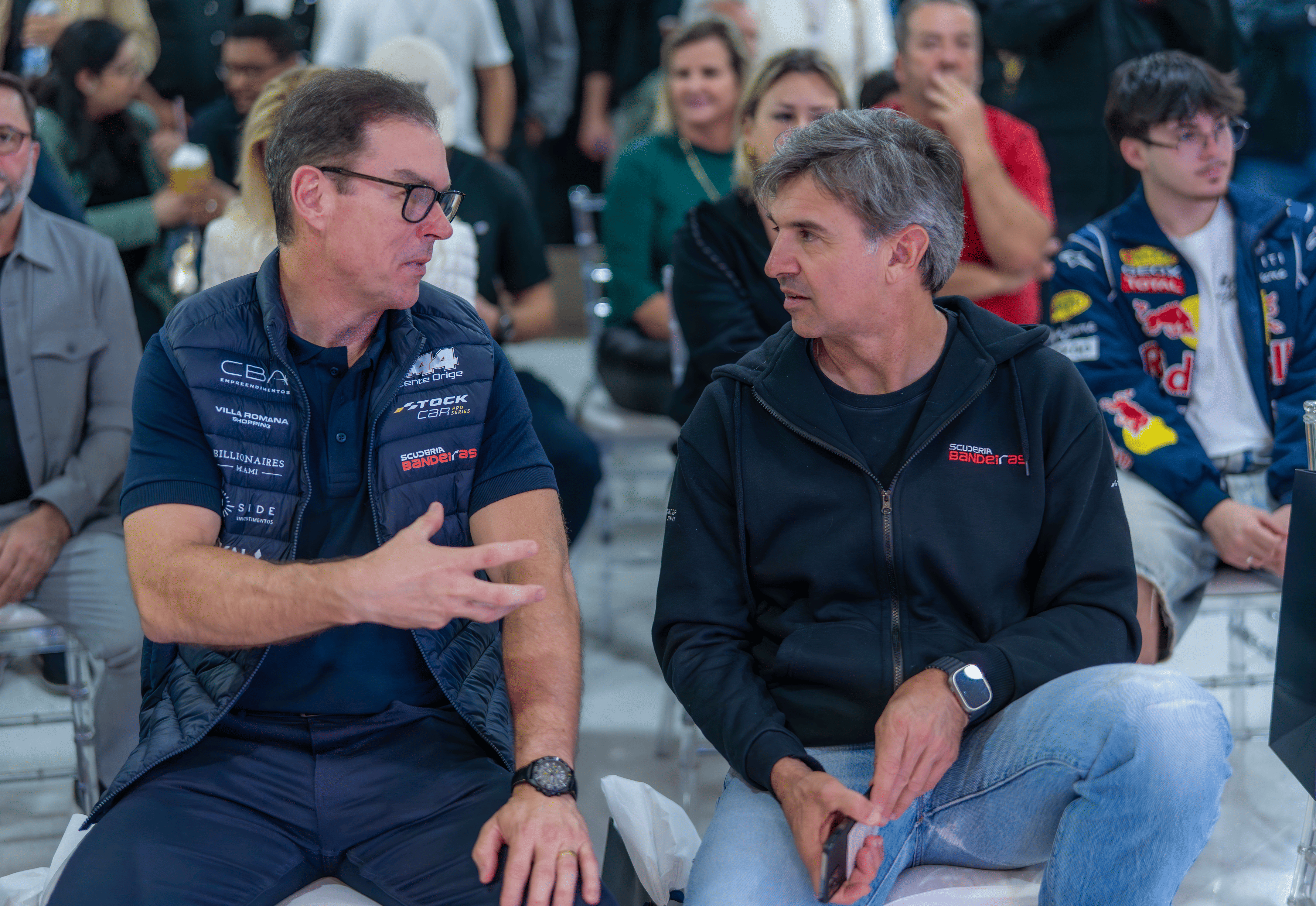Grande número de apaixonados por automobilismo e curiosos pelas histórias das pistas se encontraram na quinta-feira (09/10) no Villa Romana Shopping para acompanhar um talk show com o piloto Vicente Orige, único catarinense na Stock Car Pro Series 2025, e Christian Fittipaldi, chefe da Scuderia Bandeiras, equipe criada há apenas dez meses e que já figura entre as melhores do ranking da categoria. O evento foi no Espaço CBA (terceiro andar), ambiente que pelos próximos dias vai abrigar uma exposição de itens dos pilotos, como troféus e o macacão que Fittipaldi usou aos sete anos, nas primeiras corridas de kart, e um simulador no qual é possível experimentar um pouco da emoção de guiar a até 250 quilômetros/hora em circuitos como Interlagos.