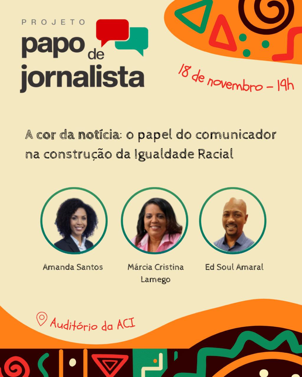 A Associação Catarinense de Imprensa (ACI) promove no dia 18 de novembro, às 19h, no Auditório da entidade, uma edição especial do Papo de Jornalista com o tema “A cor da notícia: o papel do comunicador na construção da igualdade racial” e reunirá profissionais que atuam no fortalecimento da diversidade e da equidade na comunicação.
