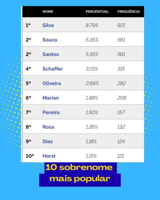 - Silva – 8,79% (921 pessoas)