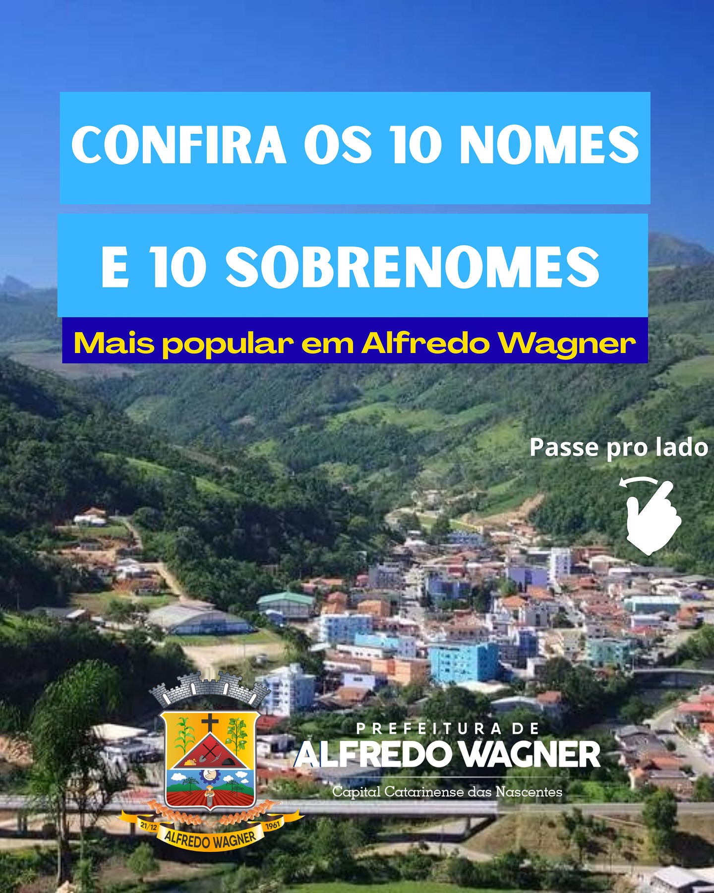 A Prefeitura de Alfredo Wagner publicou nesta semana um levantamento curioso e cheio de significado: os 10 nomes e os 10 sobrenomes mais populares do município, segundo os dados do Censo 2022 do IBGE. A iniciativa rapidamente chamou atenção dos moradores, não apenas pelos números, mas pelo resgate afetivo e histórico que essas informações carregam.