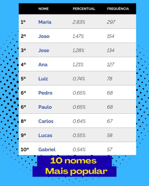 - Maria – 2,83% (297 pessoas)