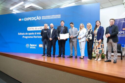 A internacionalização foi um dos eixos estratégicos da atuação da Fapesc em 2025, fortalecendo a inserção de Santa Catarina em redes globais de ciência, tecnologia e inovação. Ao longo do ano, a Fundação lançou voltados à cooperação internacional, mobilidade acadêmica e acesso a grandes programas globais de fomento, conectando pesquisadores, instituições e empresas catarinenses a centros de excelência no exterior. Como exemplos, os editais 65/2025 e 66/2025, com investimentos de R$ 10,5 milhões, para conectar empresas e pesquisas catarinenses ao maior programa de fomento do mundo, o Horizonte Europa.