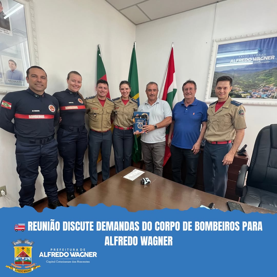 O prefeito Gilmar Sani recebeu em seu gabinete representantes do Corpo de Bombeiros Militar de Santa Catarina para tratar de demandas relacionadas ao atendimento no município de Alfredo Wagner.