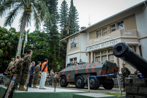 O Exército Brasileiro, por meio do Comando da 14ª Brigada de Infantaria Motorizada (Brigada Silva Paes), realizou, no dia 10 de março, um marco para a segurança pública catarinense: a entrega oficial da primeira Viatura Blindada de Transporte de Pessoal (VBTP) EE-11 Urutu à Polícia Militar de Santa Catarina (PMSC). O evento, na sede da Brigada em Florianópolis, simboliza a integração inédita entre as Forças para reforçar o 1º Batalhão de Pronta Resposta (BPR), unidade de elite sediada em Joinville.