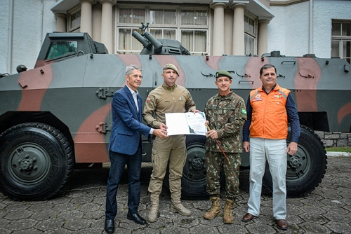 A cerimônia contou ainda com a participação do General de Brigada Ricardo Miranda Aversa, Secretário Adjunto da Proteção e Defesa Civil de Santa Catarina, reforçando o uso do equipamento em futuras missões humanitárias e de gestão de crises climáticas no estado.