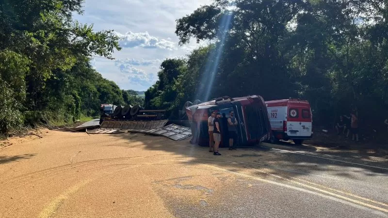A colisão envolveu uma carreta Volvo FH 500 (placas de Canguçu/RS), carregada com grãos, e uma motocicleta Honda CB 500 (placa de Descanso/SC). Com o impacto, a carreta tombou, espalhando a carga e bloqueando parcialmente a rodovia.