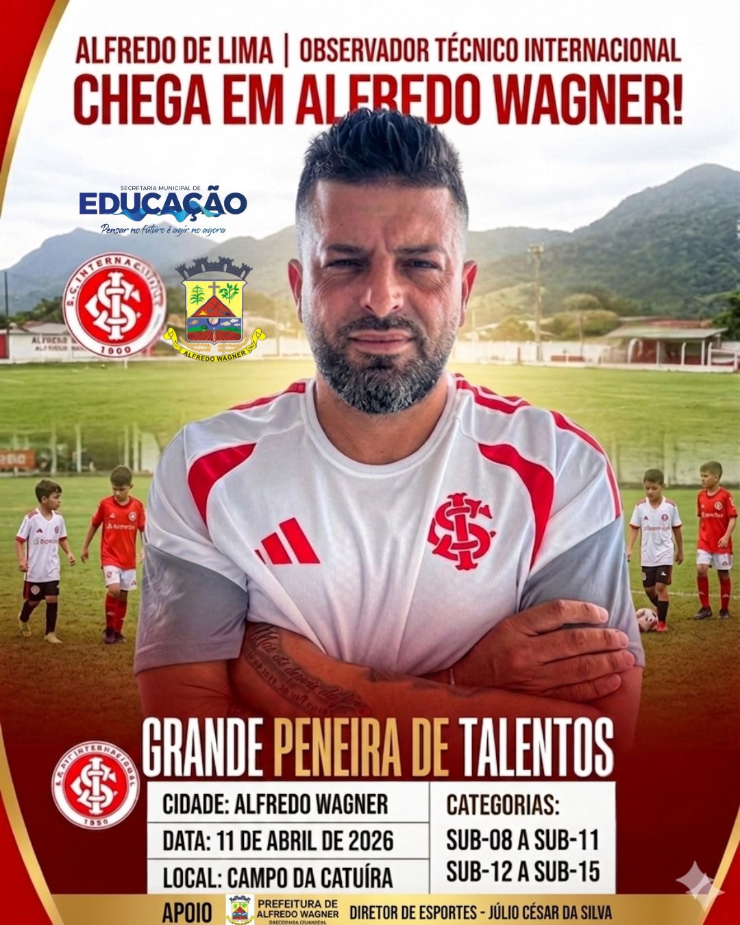 A busca pelo sonho de se tornar um jogador de futebol profissional ganha um capítulo especial em Alfredo Wagner. No dia 11 de abril de 2026, o município será o palco de uma seletiva oficial do Sport Club Internacional, um dos clubes mais tradicionais do Brasil.