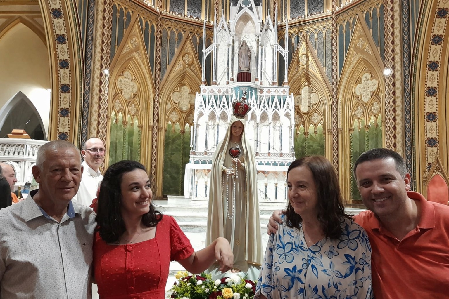 A cerimônia ocorreu após uma belíssima Santa Missa, celebrada por um dos sacerdotes da instituição, em um ambiente que por si só já convida à contemplação. A igreja, em estilo gótico e ainda em construção, possui seu interior parcialmente concluído, mas suficiente para impressionar os fiéis pela grandiosidade e riqueza de detalhes arquitetônicos. O cenário proporcionou aos presentes uma experiência espiritual intensa, marcada pelo recolhimento e pela beleza.