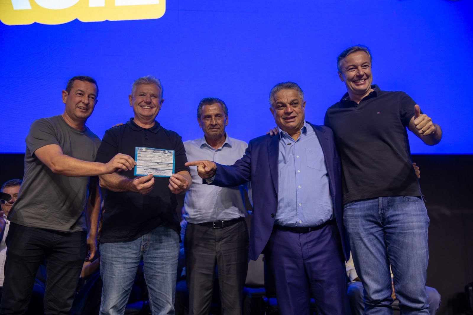 A mudança ocorreu durante o evento que marcou a renúncia do prefeito João Rodrigues, que deixa o cargo para disputar o governo do Estado pela legenda.