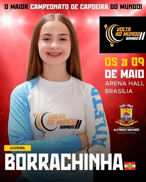 A atleta Evelyn “Borrachinha”, de Alfredo Wagner, está pronta para um novo desafio em sua trajetória na capoeira. Pela primeira vez, ela vai participar do card principal do evento Volta ao Mundo Bambas, um dos mais importantes do cenário.