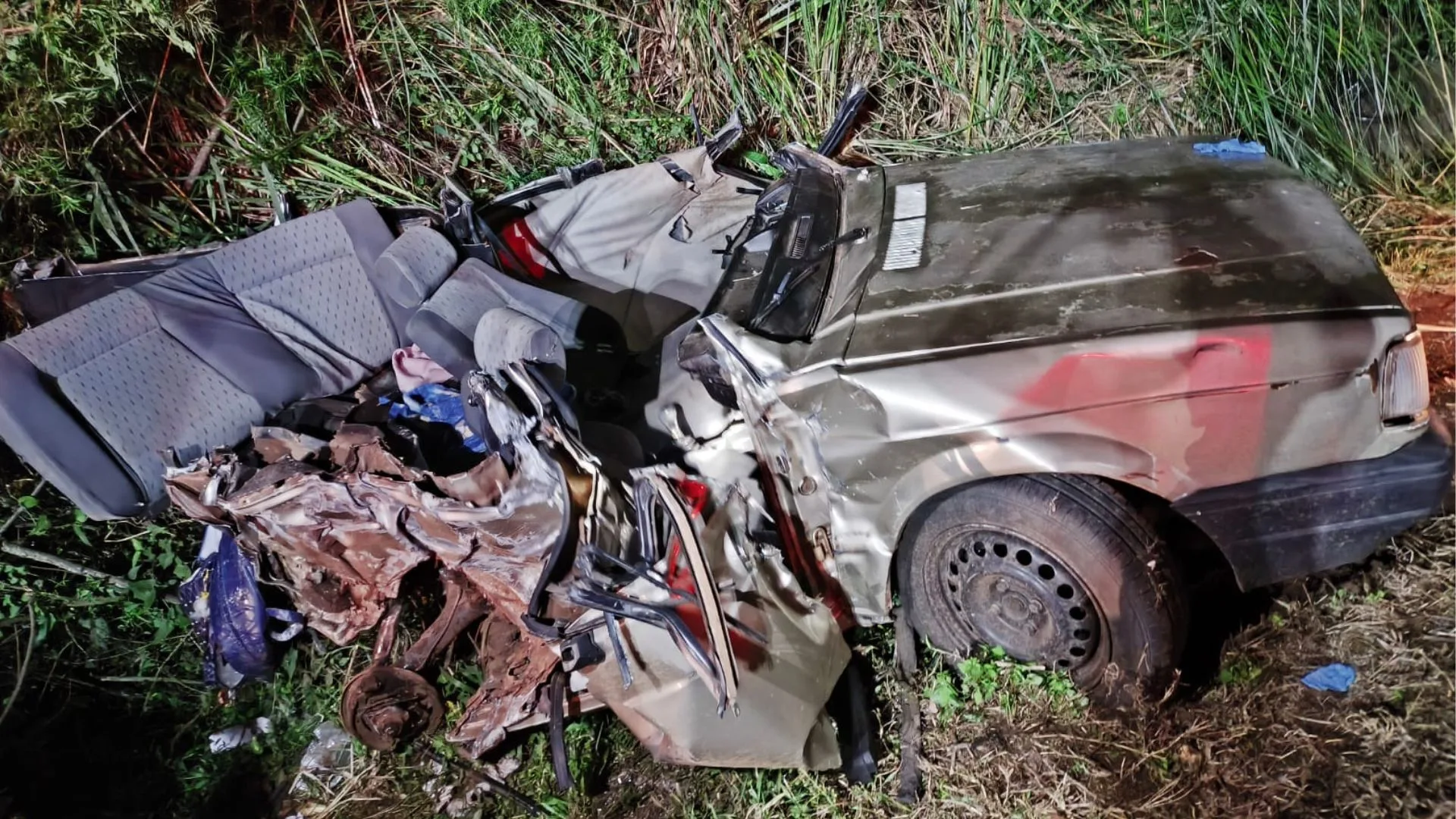 No veículo de passeio estavam três ocupantes. O motorista foi socorrido com vida e encaminhado para atendimento pelo SAMU, apresentando lesões graves. Os outros dois passageiros não resistiram aos ferimentos e morreram ainda no local, presos às ferragens.